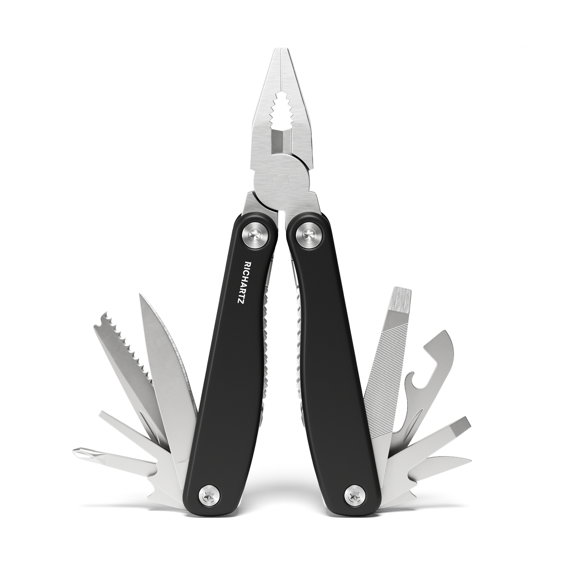 Verlang alles von diesem Multitool! Vor allem, dass es Dich nach Kräften im entscheidenden Moment unterstützt: Schneide Drähte, dreh Schrauben, nutze seine kräftige gegossene Zange und sei Dir dabei immer sicher, dass sich die Funktionen durch die Arretierung verlässlich festmachen und einfach wieder lösen lassen. Mit seinen schwarzen Aluminiumgriffen und der mitgelieferten Gürteltasche ist unser CRAFTER tool auch optisch ein ernstzunehmendes Werkzeug!