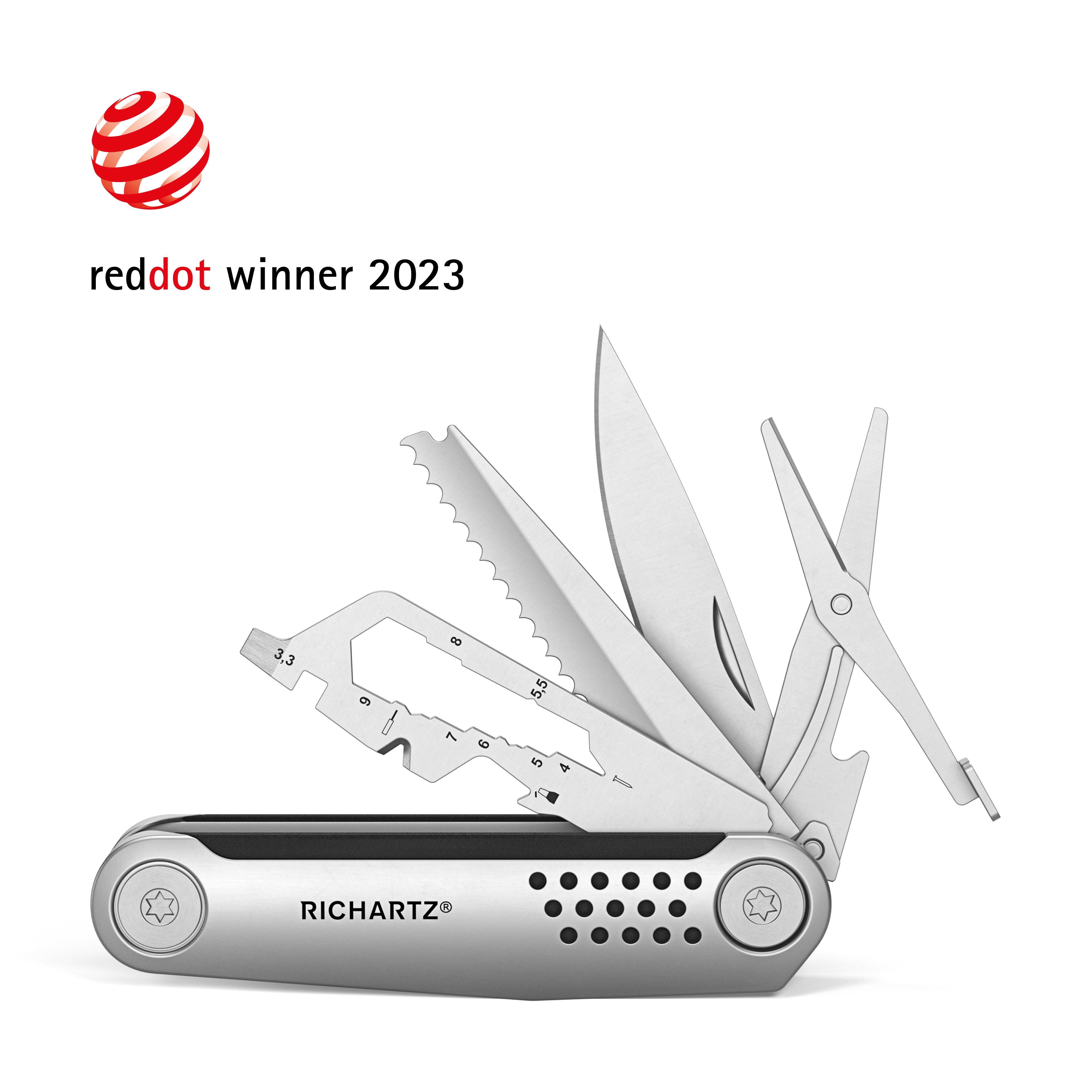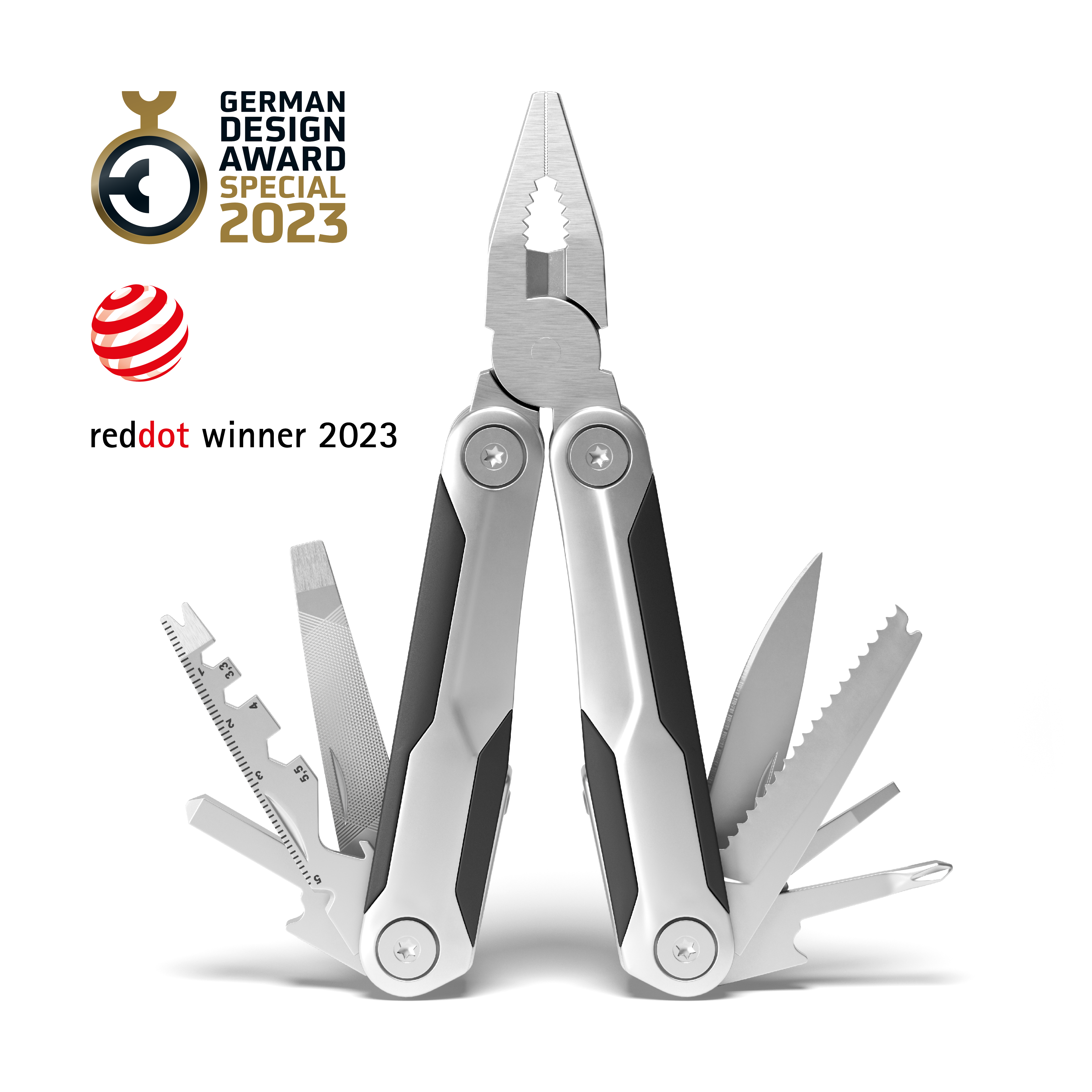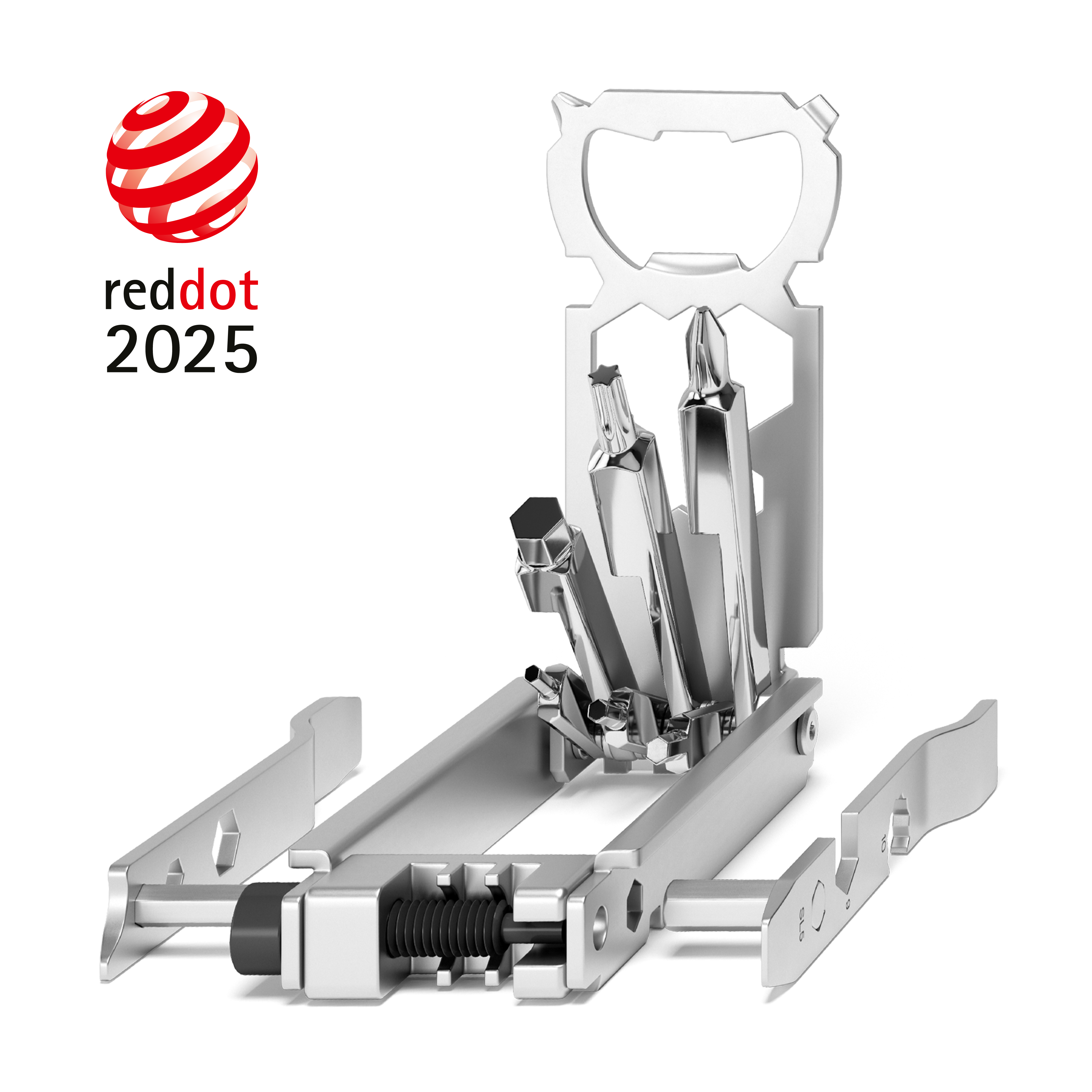 Mit seiner außergewöhnlichen Mechanik sorgt unser EXOTOOL 24+ dafür, dass Du seine Funktionen auch dann parat hast, wenn es zugeklappt ist. Das ist nur ein Grund, warum das Multitool sich den reddot design award 2025 sichern konnte.