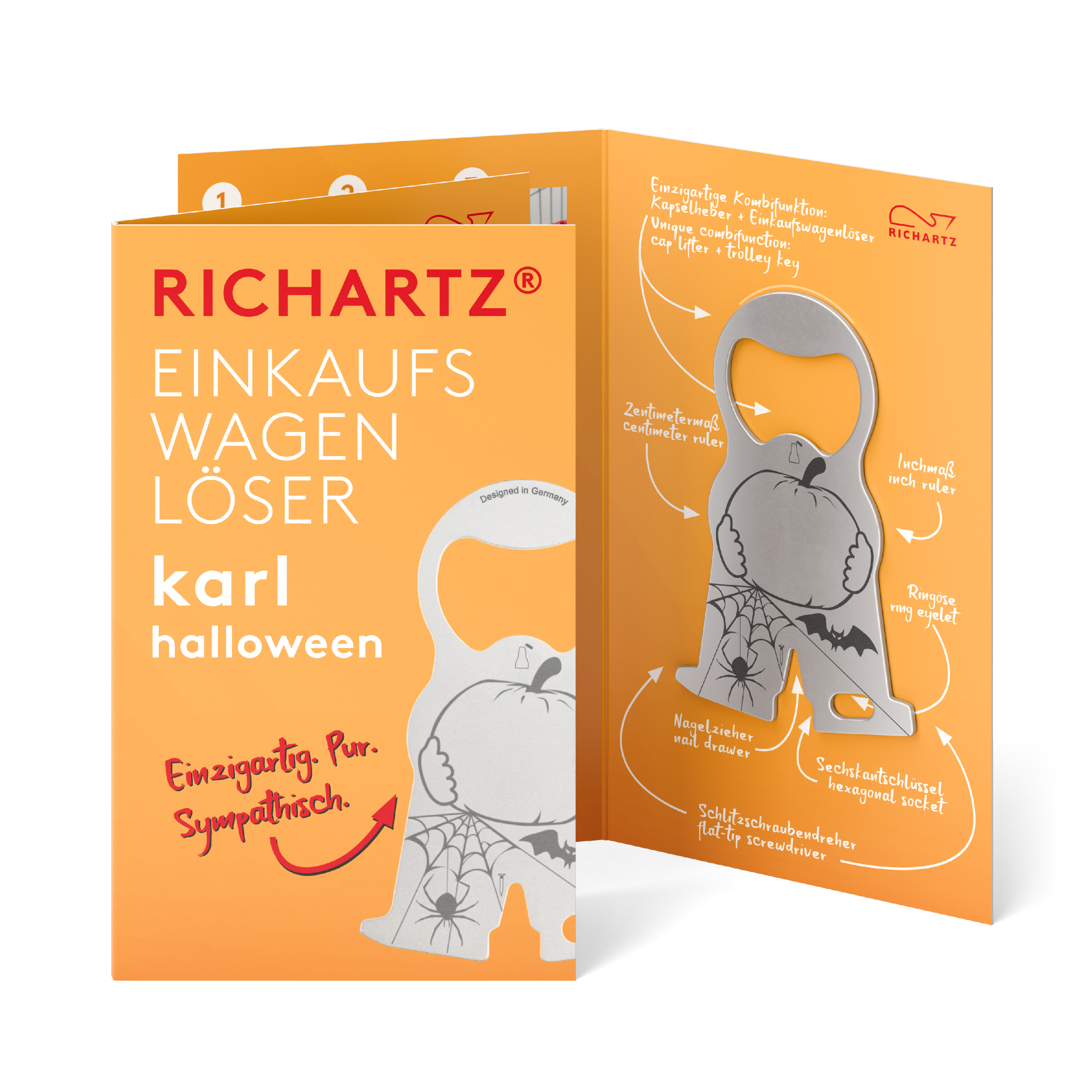 We are family, sagt Karl! In seiner EINKAUFSWAGENLÖSER-karl-Familie ist für jede Branche und für jeden Anlass dabei - auch für kleinste Zielgruppen. Unser EINKAUFSWAGENLÖSER karl selbst kommt ultraflach, handlich und mit acht Funktionen ausgestattet an jedem Schlüsselbund klar. RICHARTZ-typisch treffen hier Formschönheit auf Qualität, Funktion auf Sympathie.