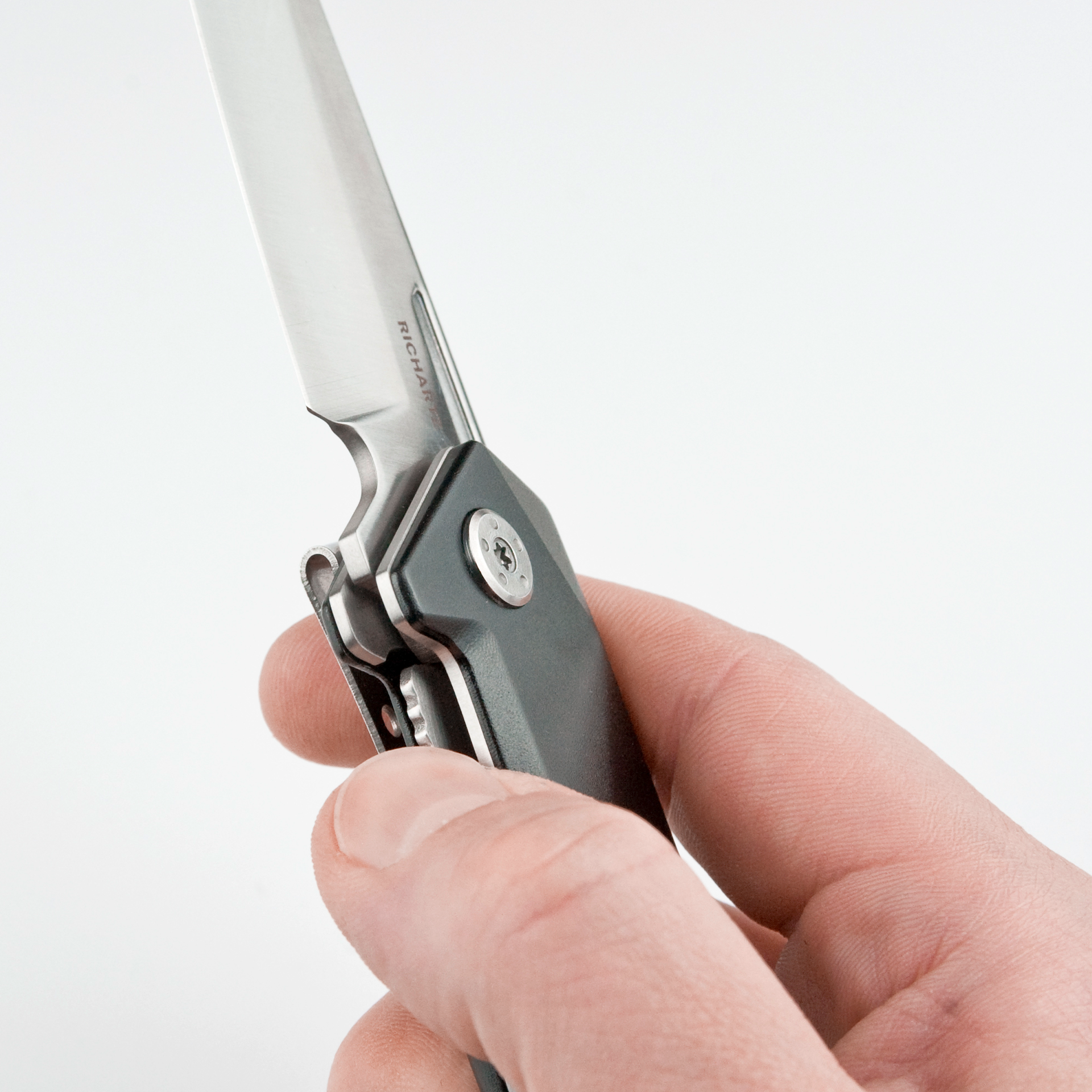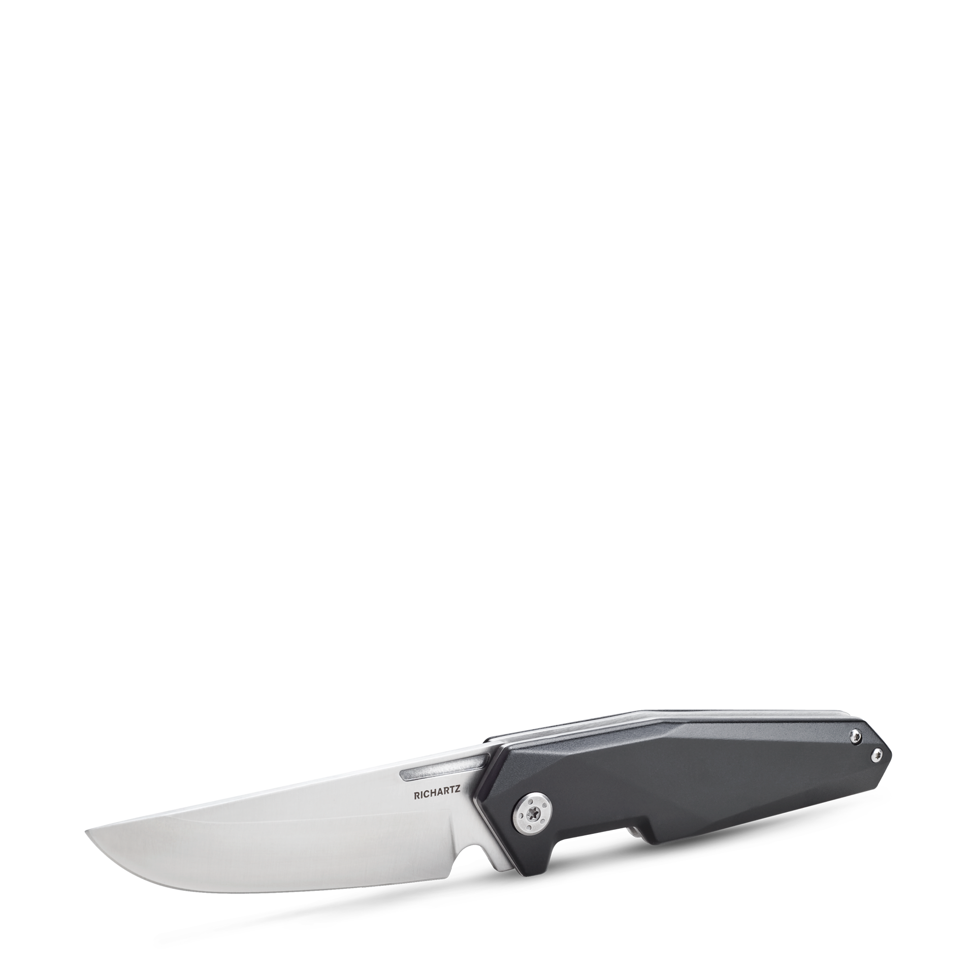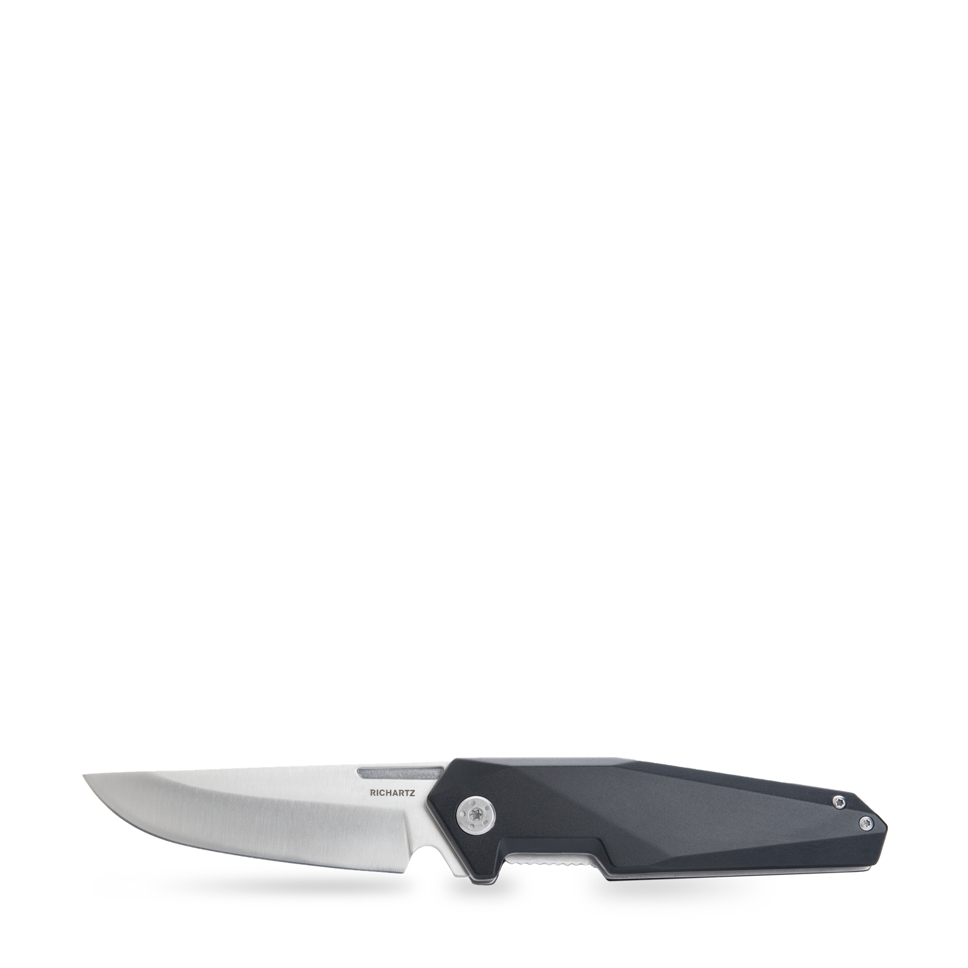 VECTOR 200. Sicher, hochwertig, modern. Das RICHARTZ Einklingenmesser besticht durch die kräftige rostfreie Klinge, die Safety-Lock Klingenverriegelung und die modern gestalteten, hochwertigen Aluminiumschalen. Mit dem Edelstahl-Clip lässt sich VECTOR 200 einfach und sicher befestigen.