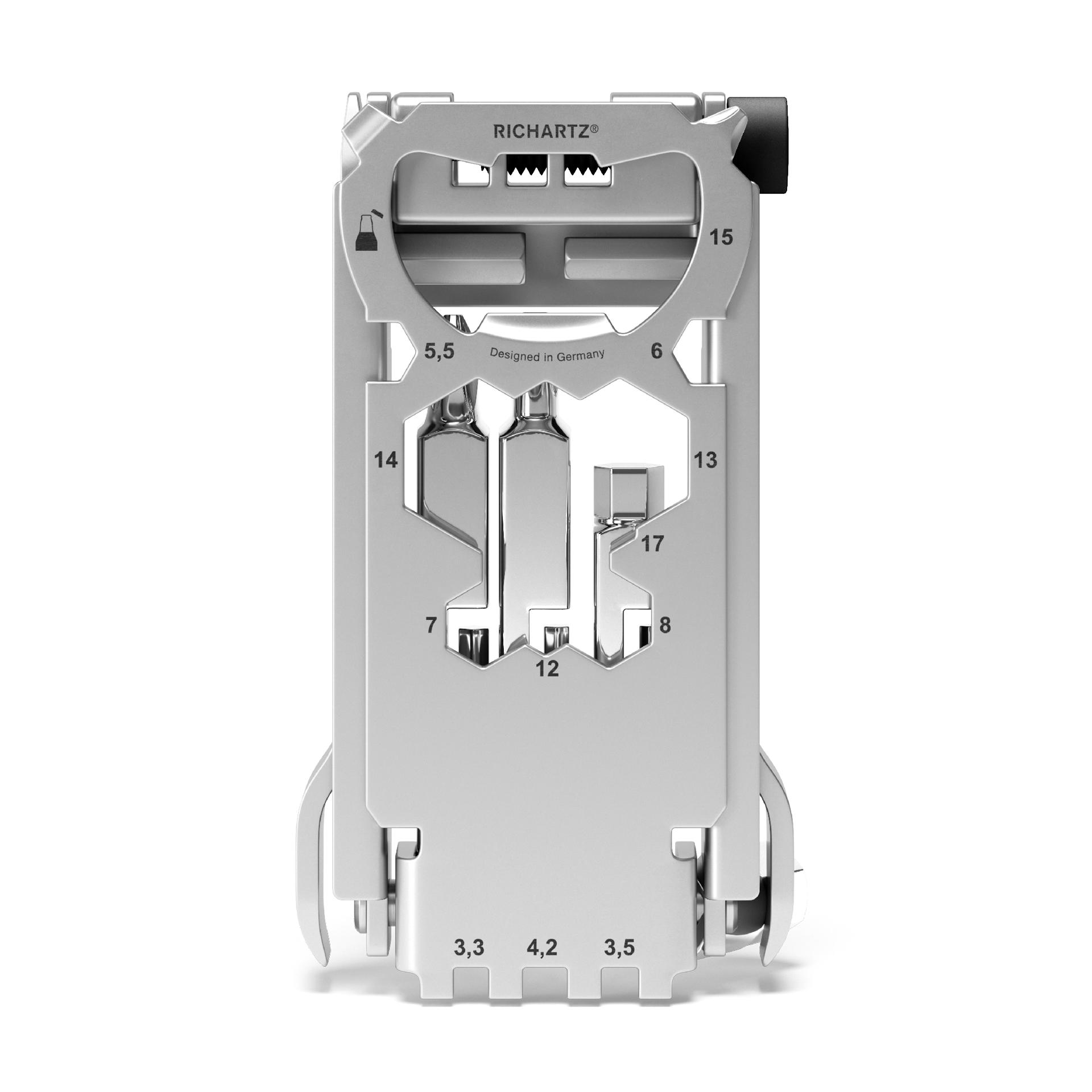 If you're not one yet, you probably will be: A bike enthusiast! By the way, he loves this trick: always have the BIKETOOL 32+ with you, ride for all you're worth, and when it stops working: Simply trust that RICHARTZ offers real help for everyday cycling. Included: 32 functions, from chain riveters to tire levers. Sophisticated functional attachment. Compact format. Thanks to the bottle opener and screwdriver, also useful off the bike path! Developed by leading cyclists - and highly recommended.
