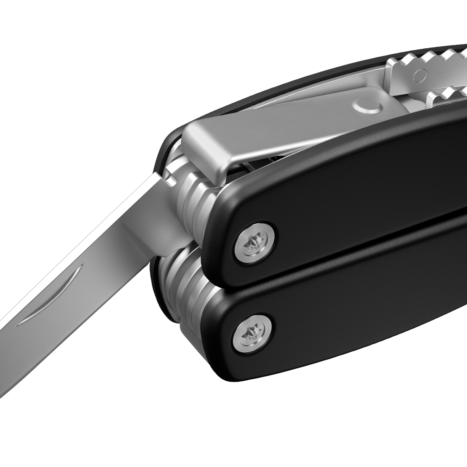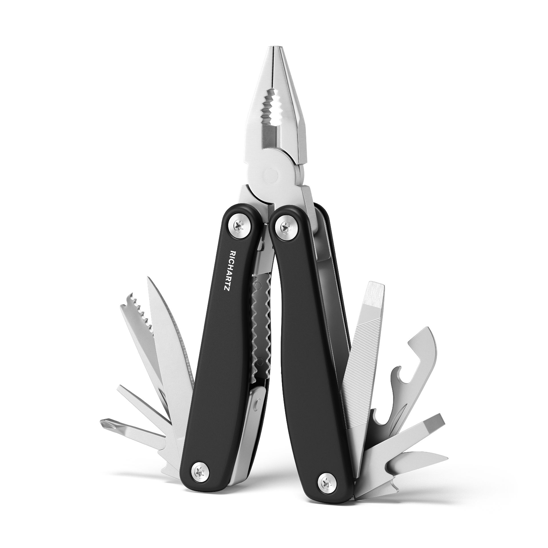 Demand everything from this multitool! Above all, that it supports you to the best of its ability at the decisive moment: Cut wires, turn screws, use its powerful cast pliers and always be sure that the functions can be reliably locked in place and easily released again thanks to the locking mechanism. With its black aluminum handles and the included belt pouch, our CRAFTER tool also looks the part!