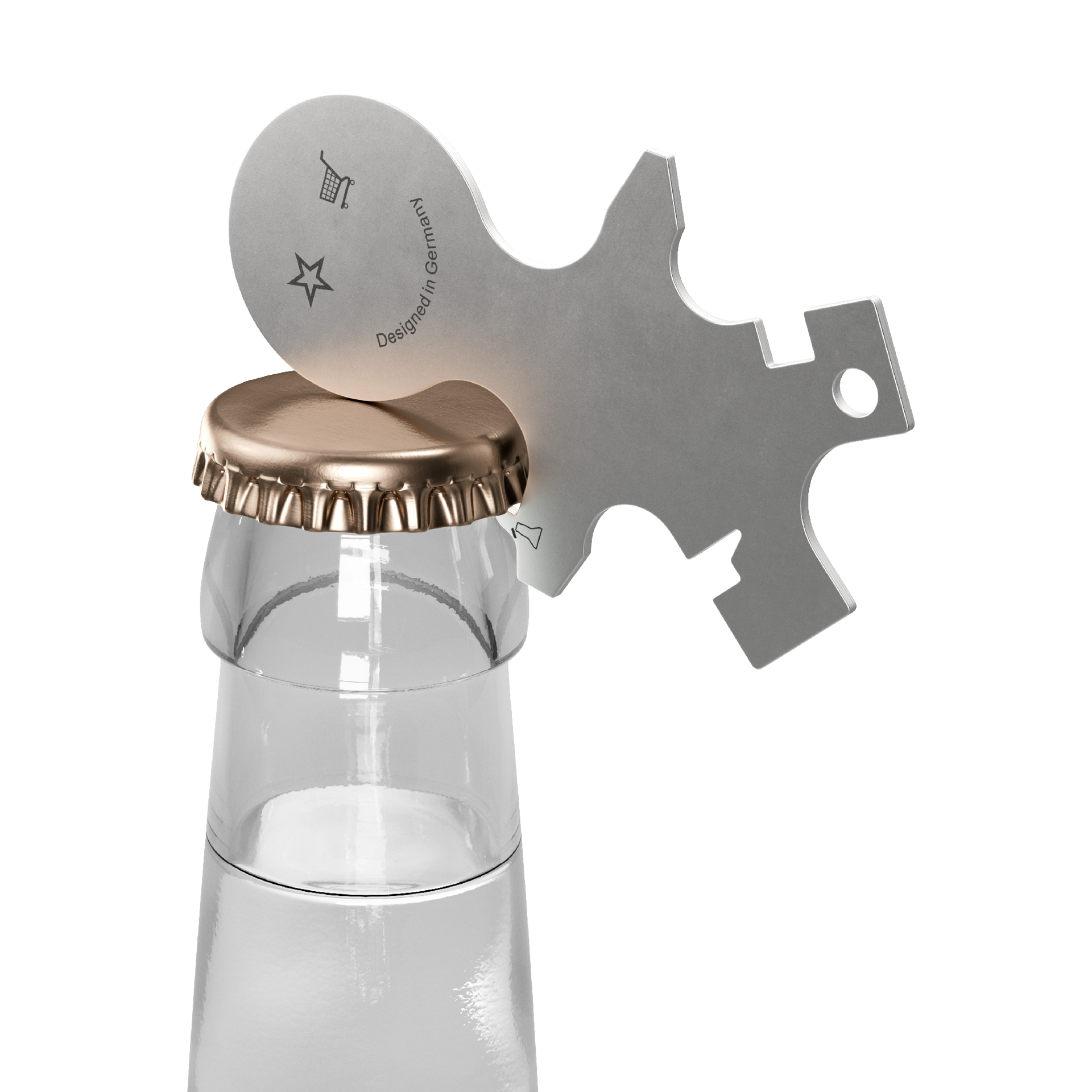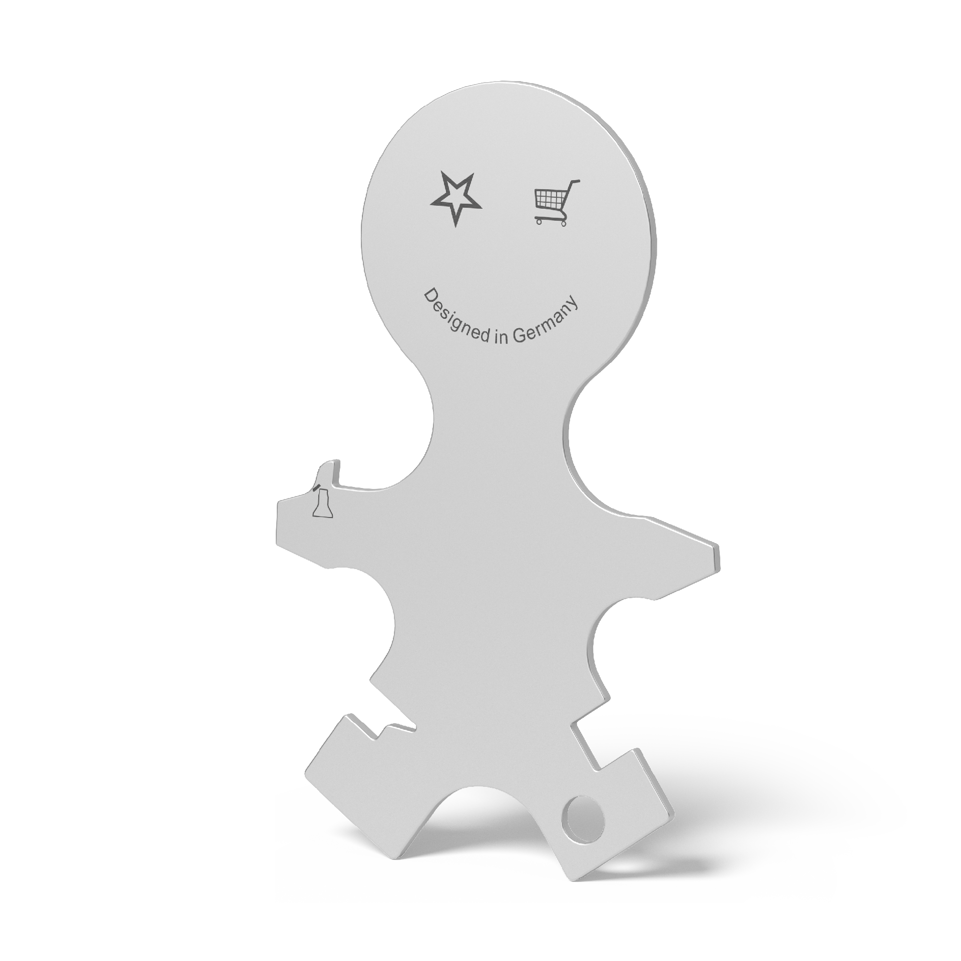 Simply puts you in a good mood - even at first sight: Our EINKAUFSWAGENLÖSER happy makes many users smile twice. Once at first sight - and a second time when it has once again done a perfect job in a wide variety of situations! Because it's not just shopping carts that are its specialty - it also comes with a bottle opener, centimeter ruler, nail puller and more. Thumbs up!