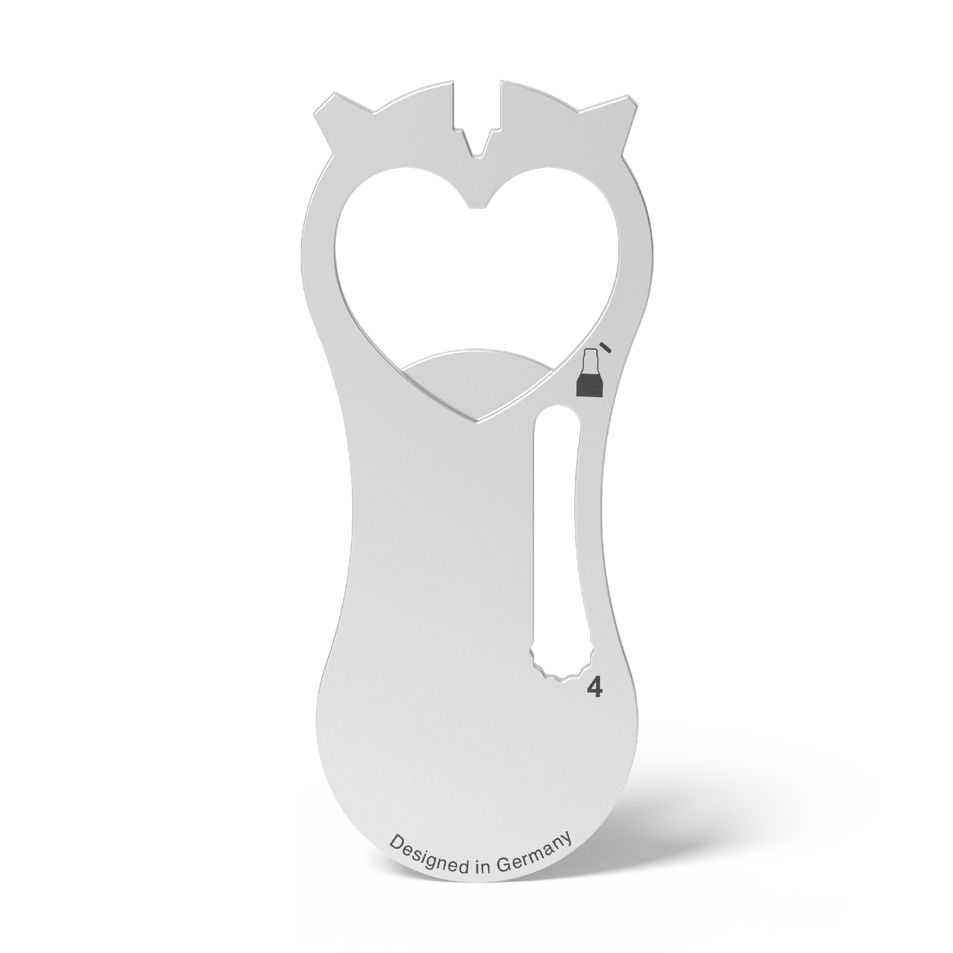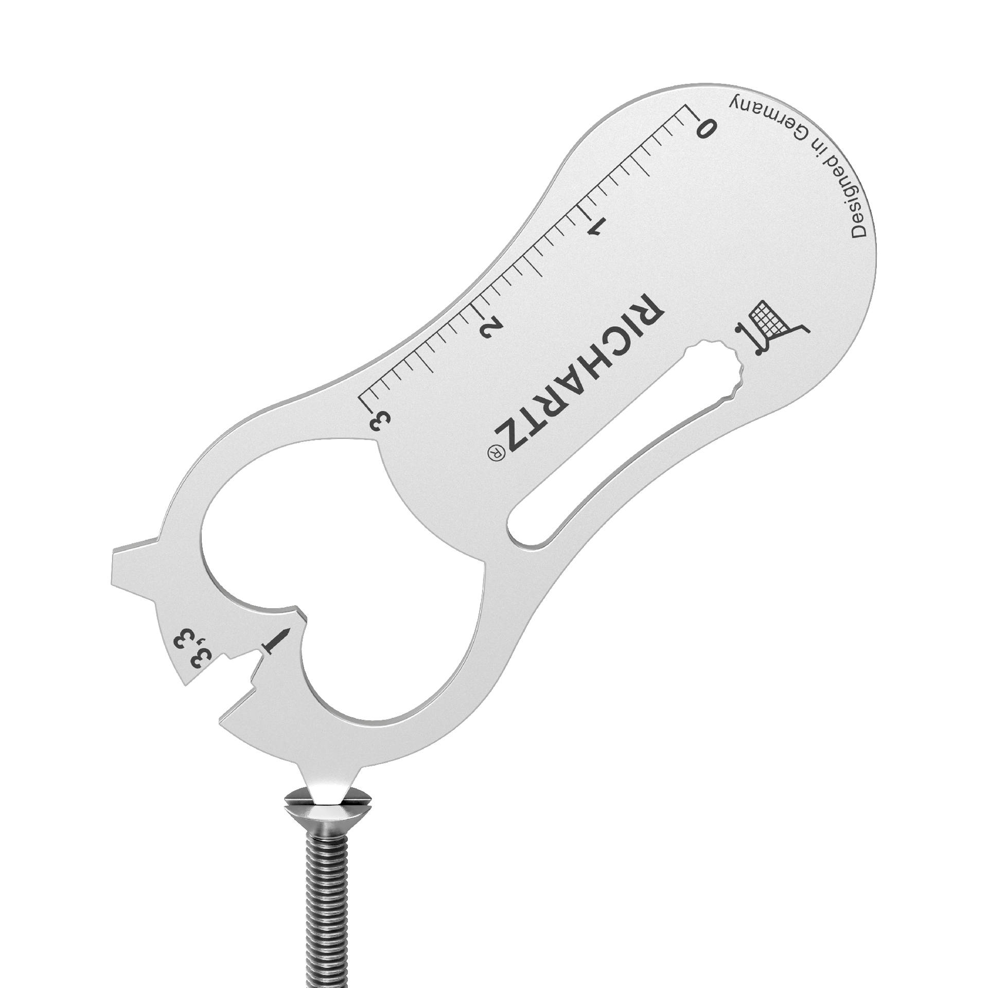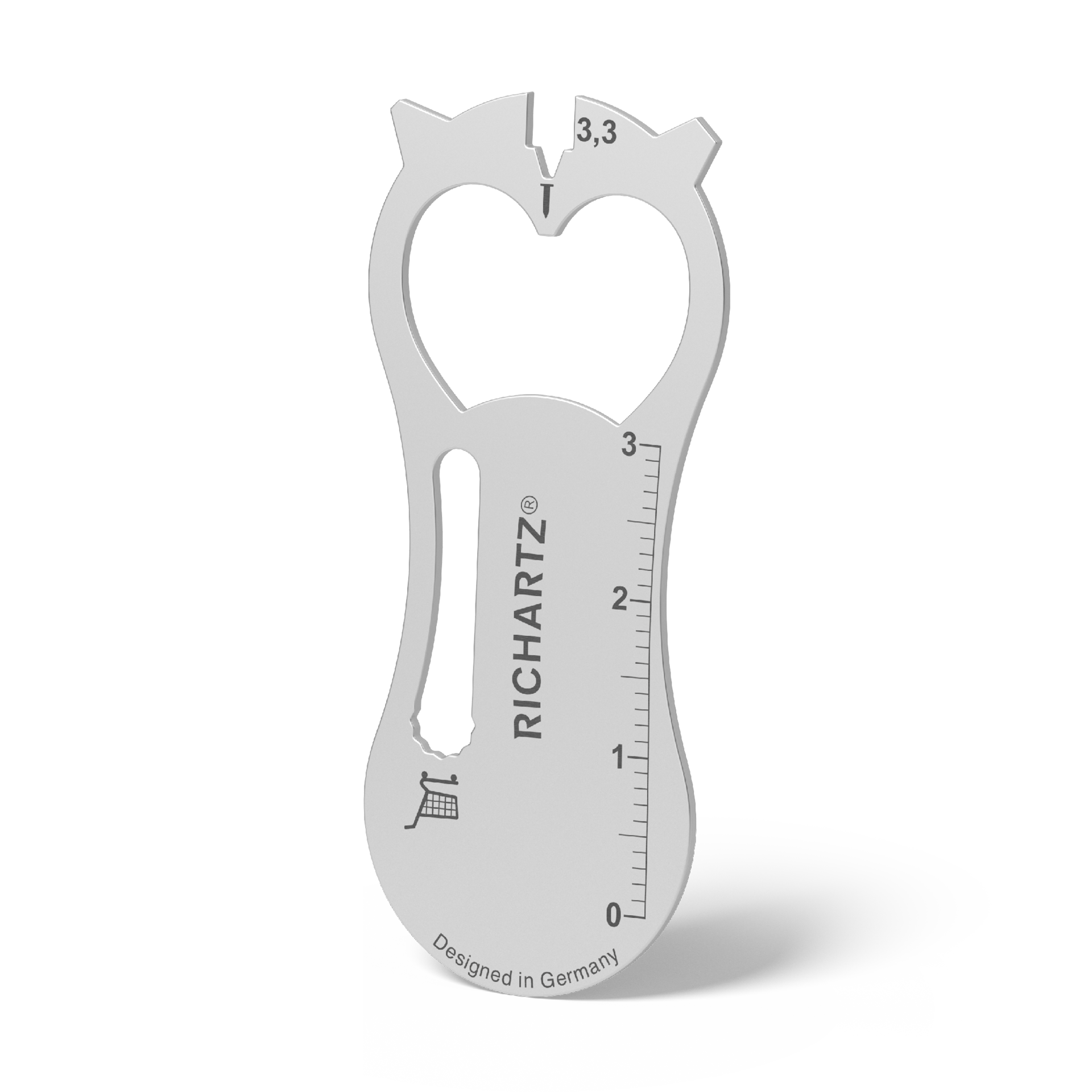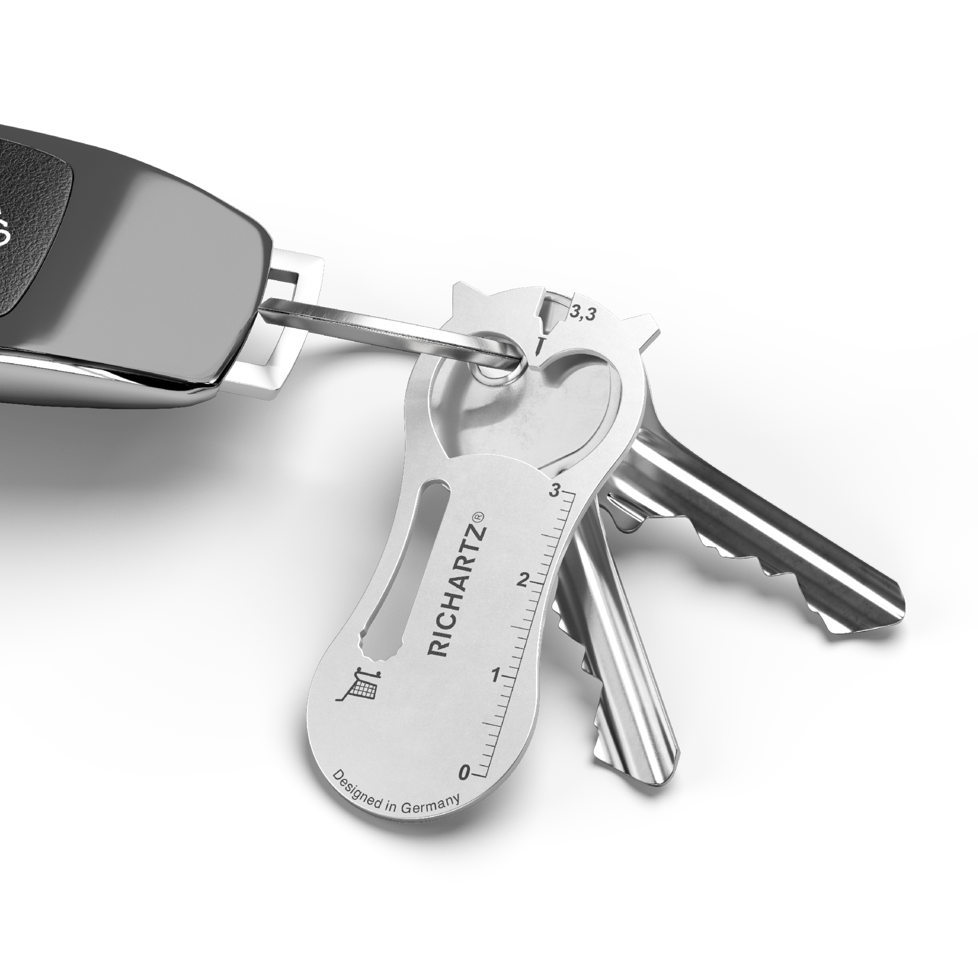 Our shopping cart remover with heart: Elegant edition with heart shape integrated into the bottle opener. Thanks to the key ring slot, all functions can be used perfectly. This means that the good piece also demonstrates a portion of cleverness. RICHARTZ doesn't need to mention that the whole thing is unbeatably versatile in everyday use with its numerous functions and is also something for the eye. Or...?!