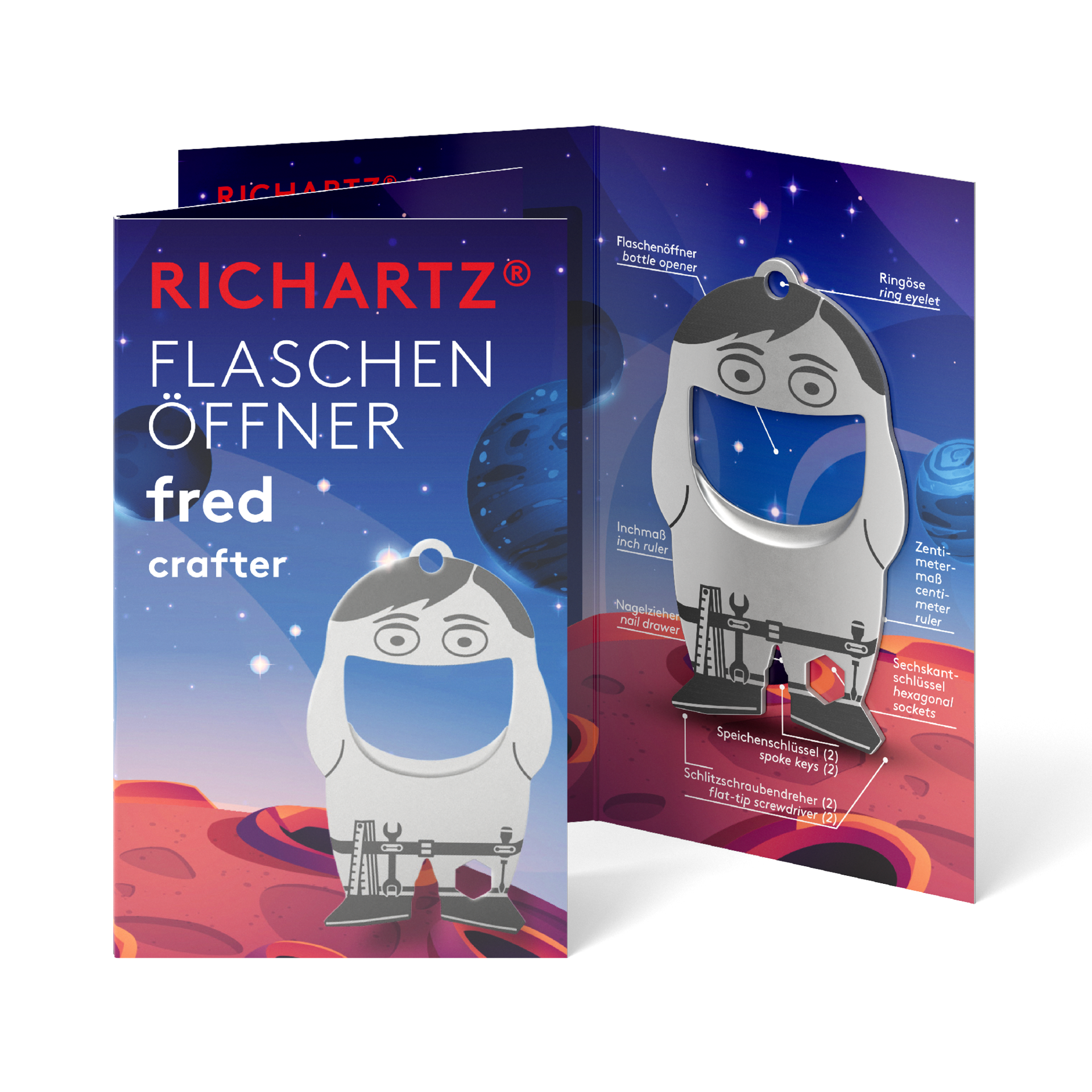 For those who like it funnier when it comes to opening bottles, Fred is the right choice: Fred shows his face, bites out bottle caps and simply has a sense of humor! He fits on every bunch of keys and generally earns a lot of sympathy for his perfect bottle-opening qualities and his 9 other extras. As an extra bonus for advertisers, with 28 different designs he is perfect for every industry and every occasion!