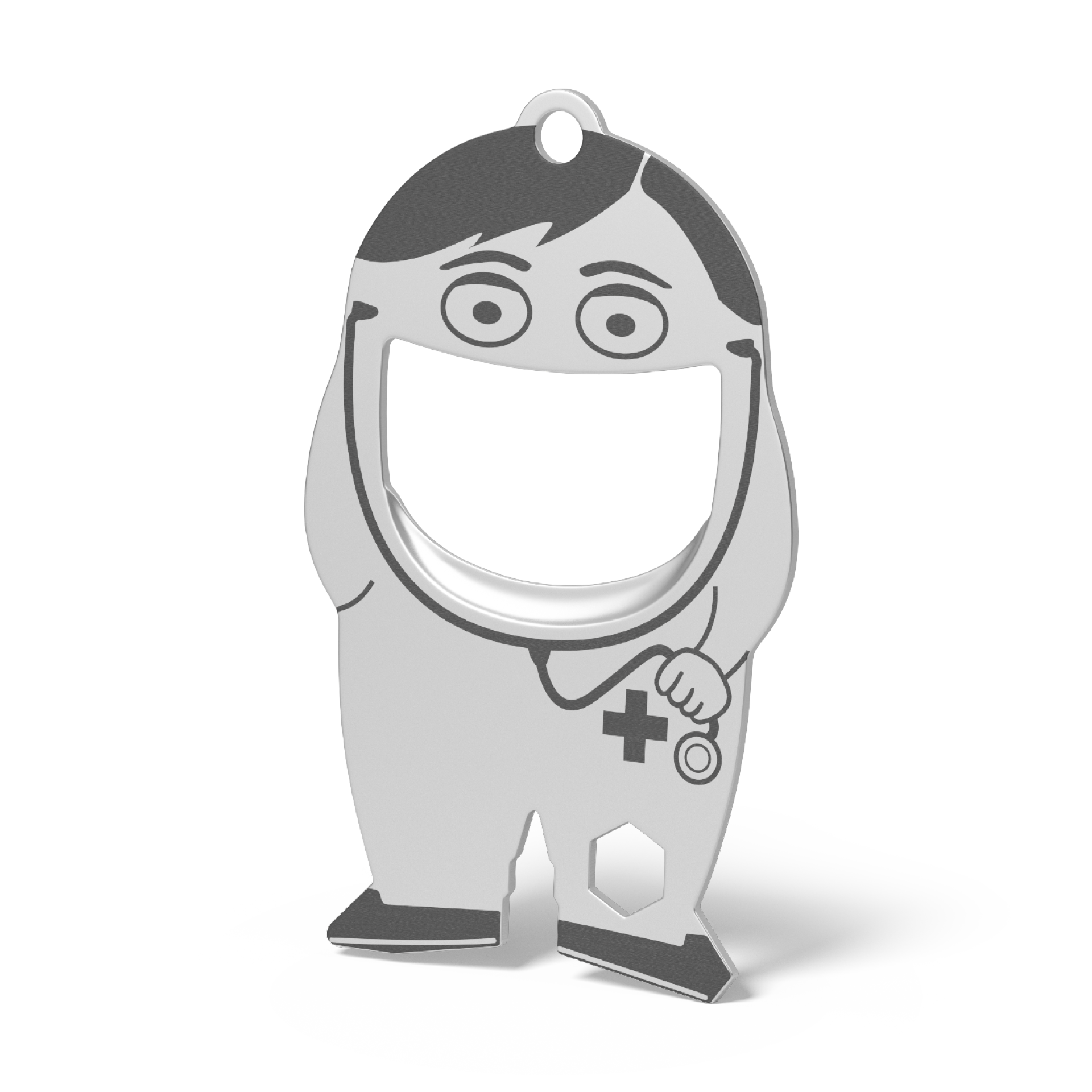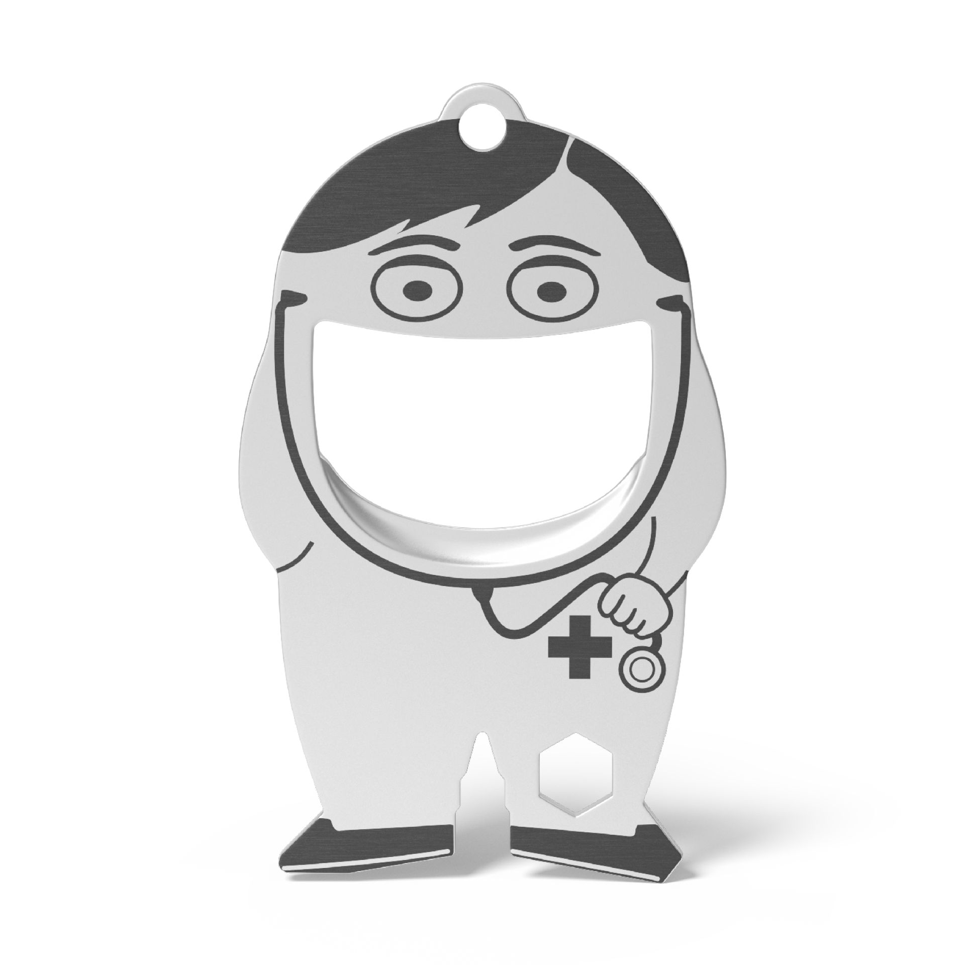 For those who like it funnier when it comes to opening bottles, Fred is the right choice: Fred shows his face, bites out bottle caps and simply has a sense of humor! He fits on every bunch of keys and generally earns a lot of sympathy for his perfect bottle-opening qualities and his 9 other extras. As an extra bonus for advertisers, with 28 different designs he is perfect for every industry and every occasion!