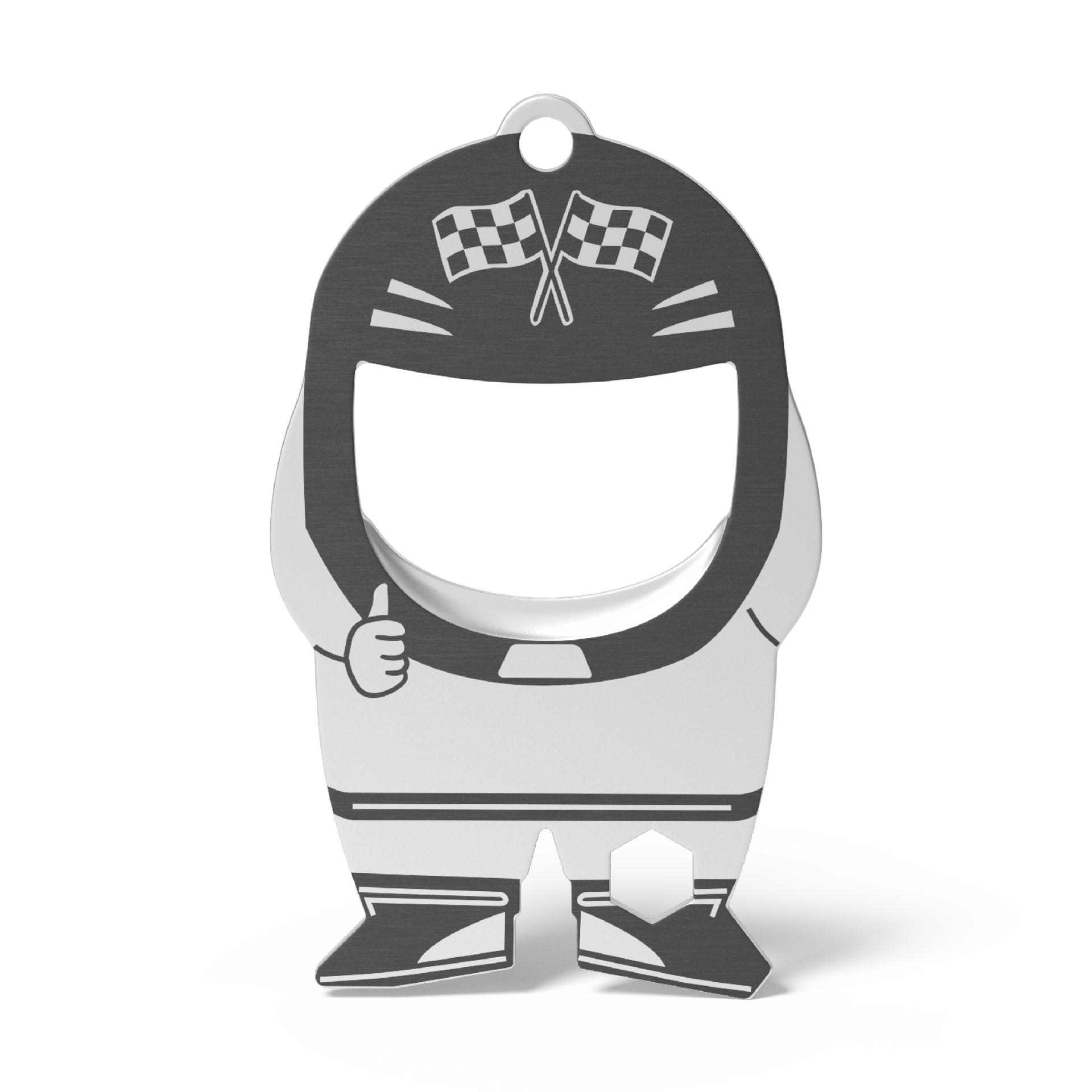 For those who like it funnier when it comes to opening bottles, Fred is the right choice: Fred shows his face, bites out bottle caps and simply has a sense of humor! He fits on every bunch of keys and generally earns a lot of sympathy for his perfect bottle-opening qualities and his 9 other extras. As an extra bonus for advertisers, with 28 different designs he is perfect for every industry and every occasion!
