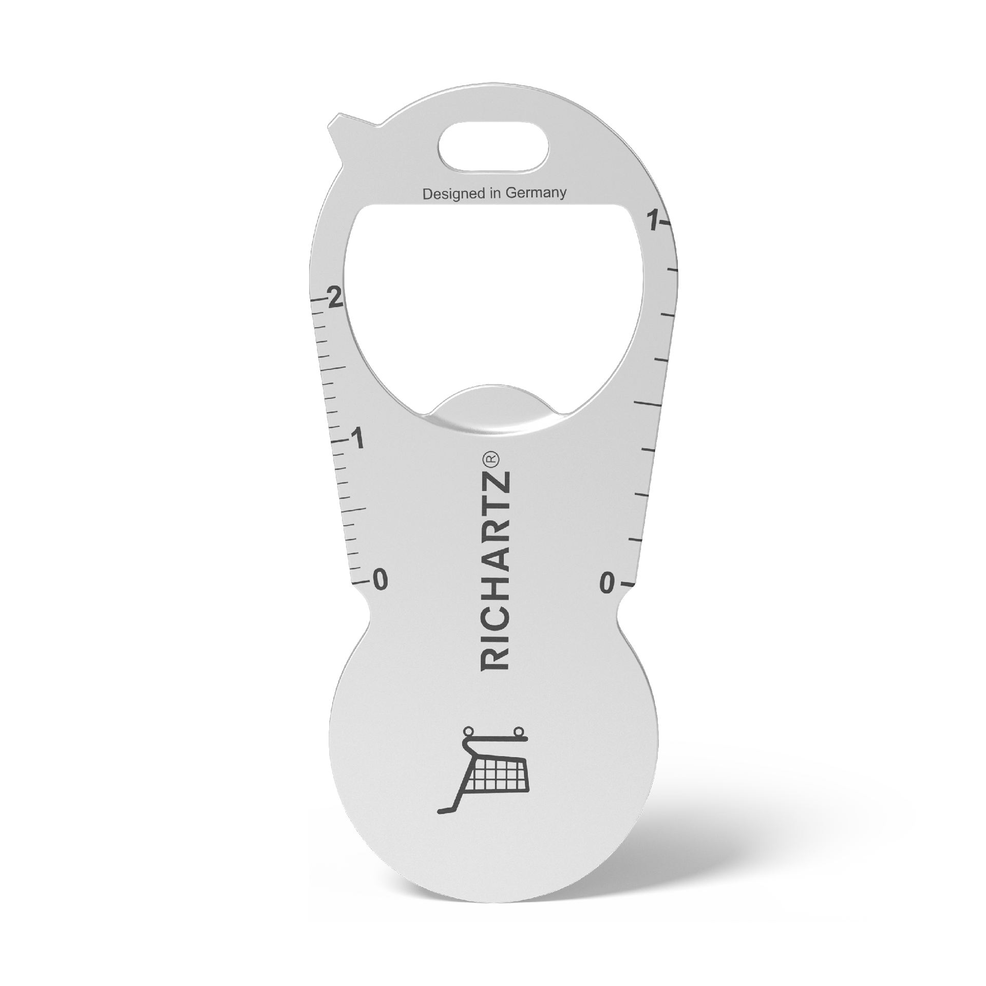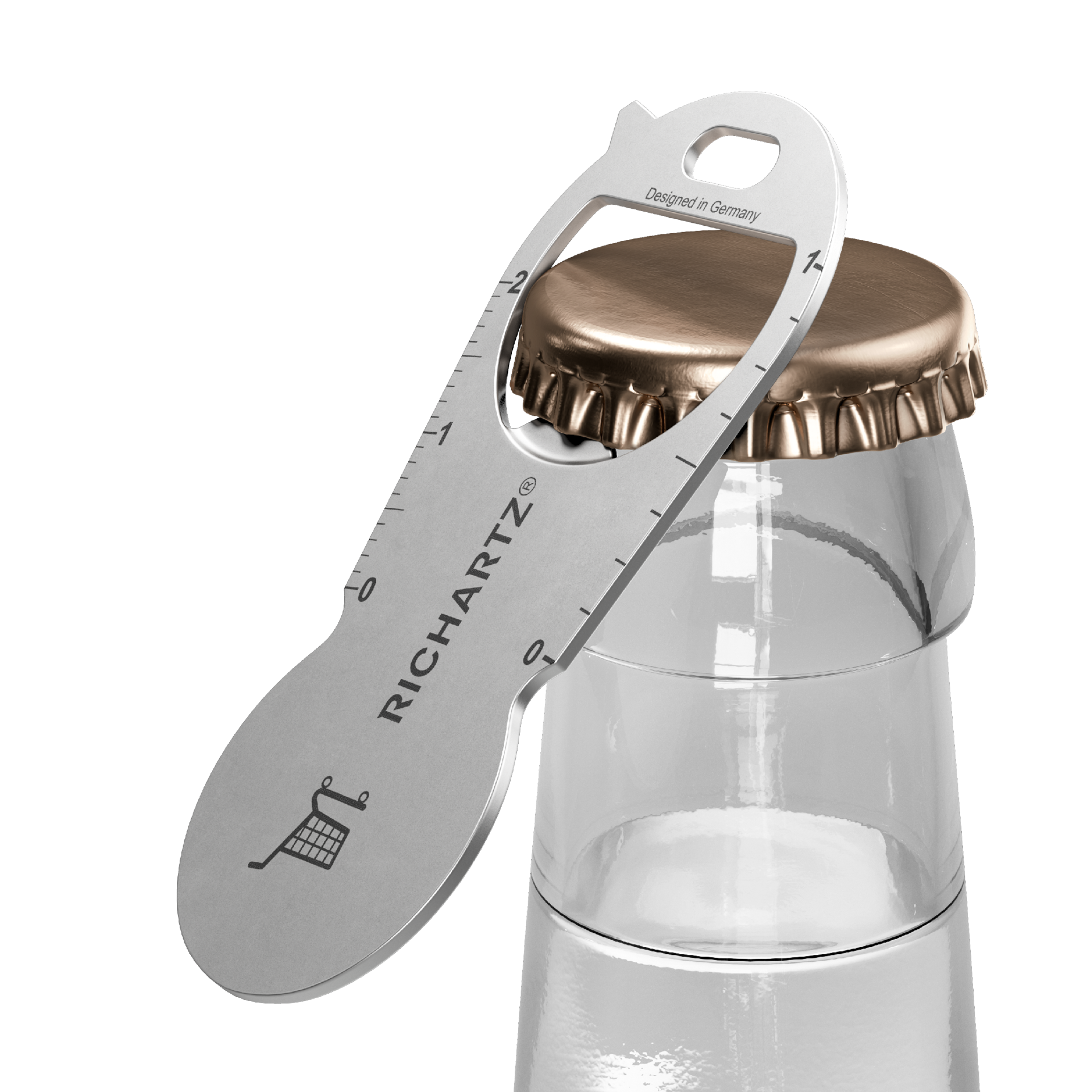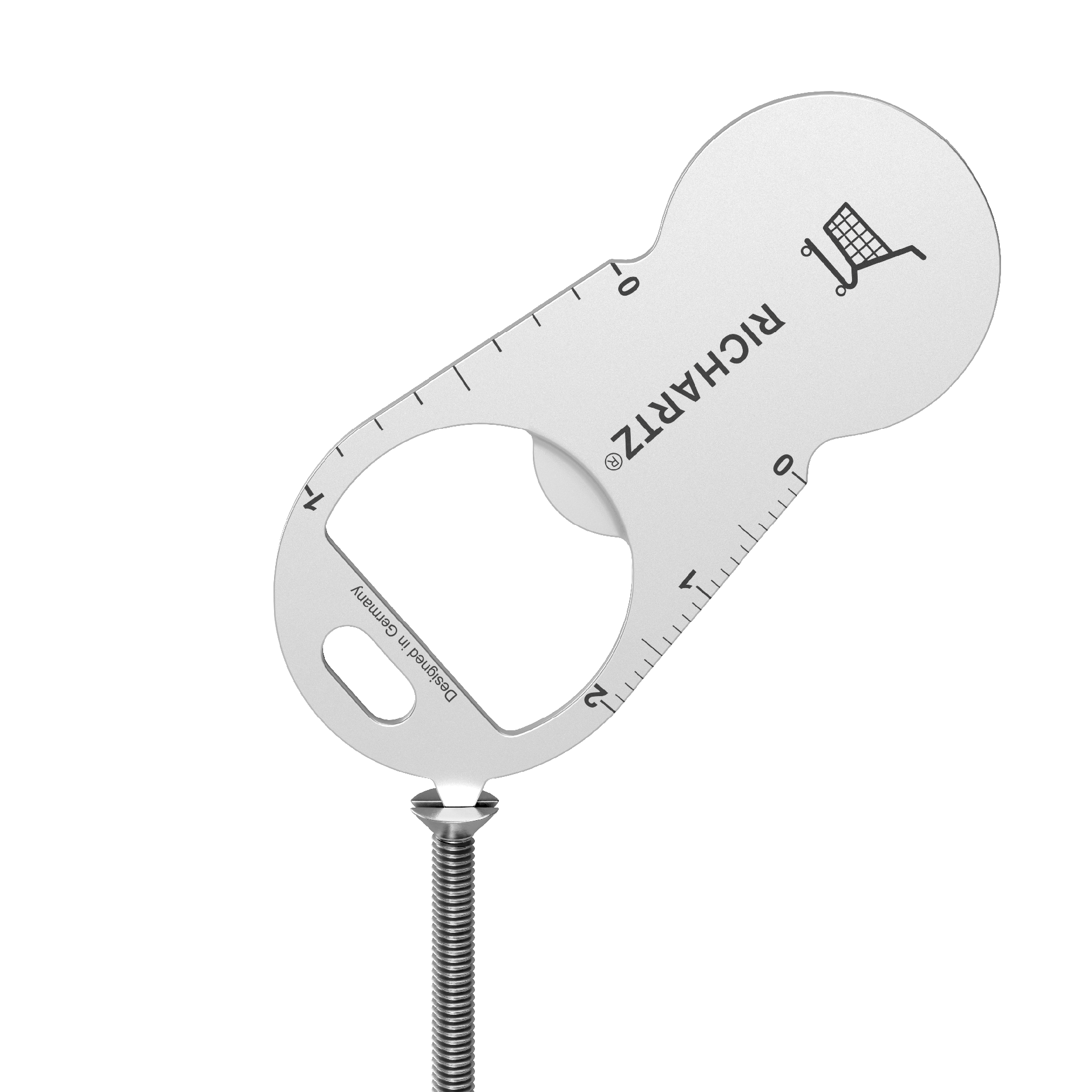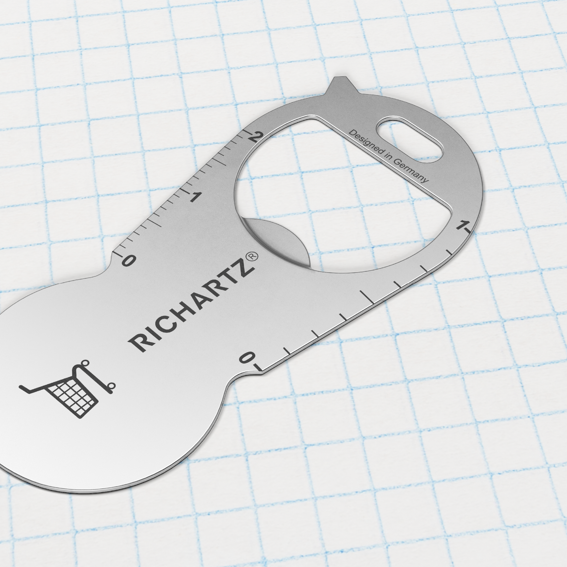 Plastic shopping cart openers are out of the question for fans of good design. It's great that there's something as beautiful as our SHOPPING TROLLEY RELEASER duo, which impresses with its form and function all round: extremely flat and handy and suitable for every bunch of keys, supplemented by a bottle opener, centimetre ruler etc. Relaxed shopping, by the way: the shopping cart can be released without having to leave your bunch of keys in the lock.